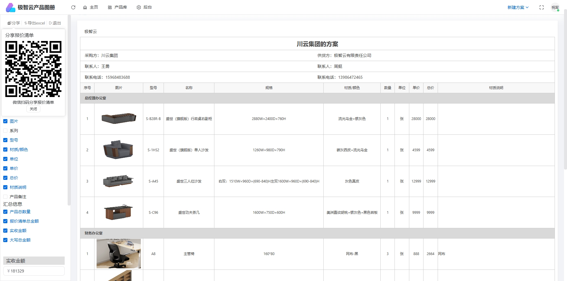 快速制作报价方案,一键生成报价清单,赋能企业产品销售。