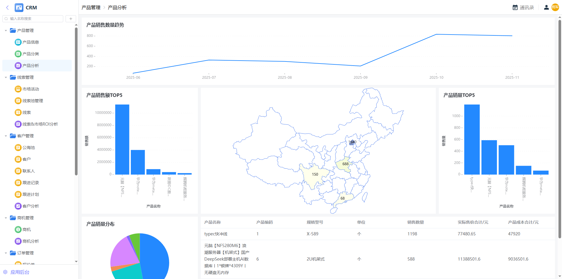 产品分析-设计-产品销售数量-地图