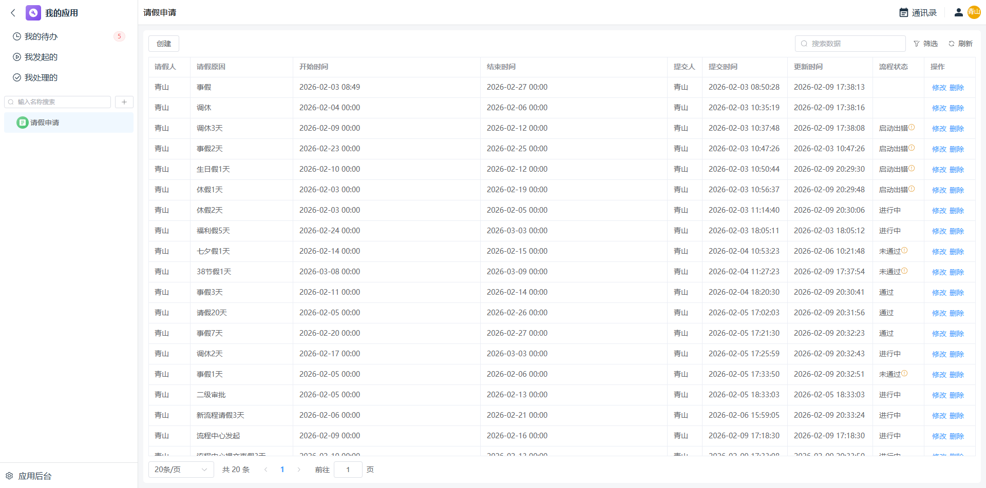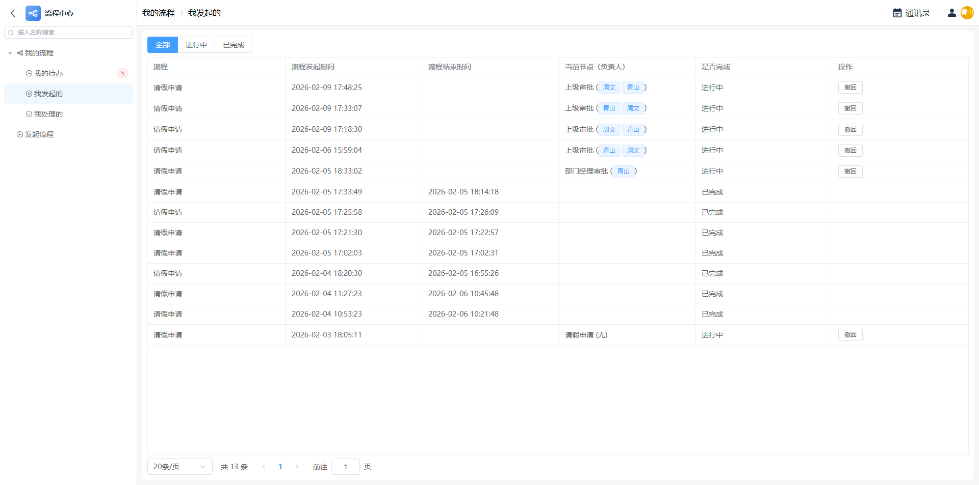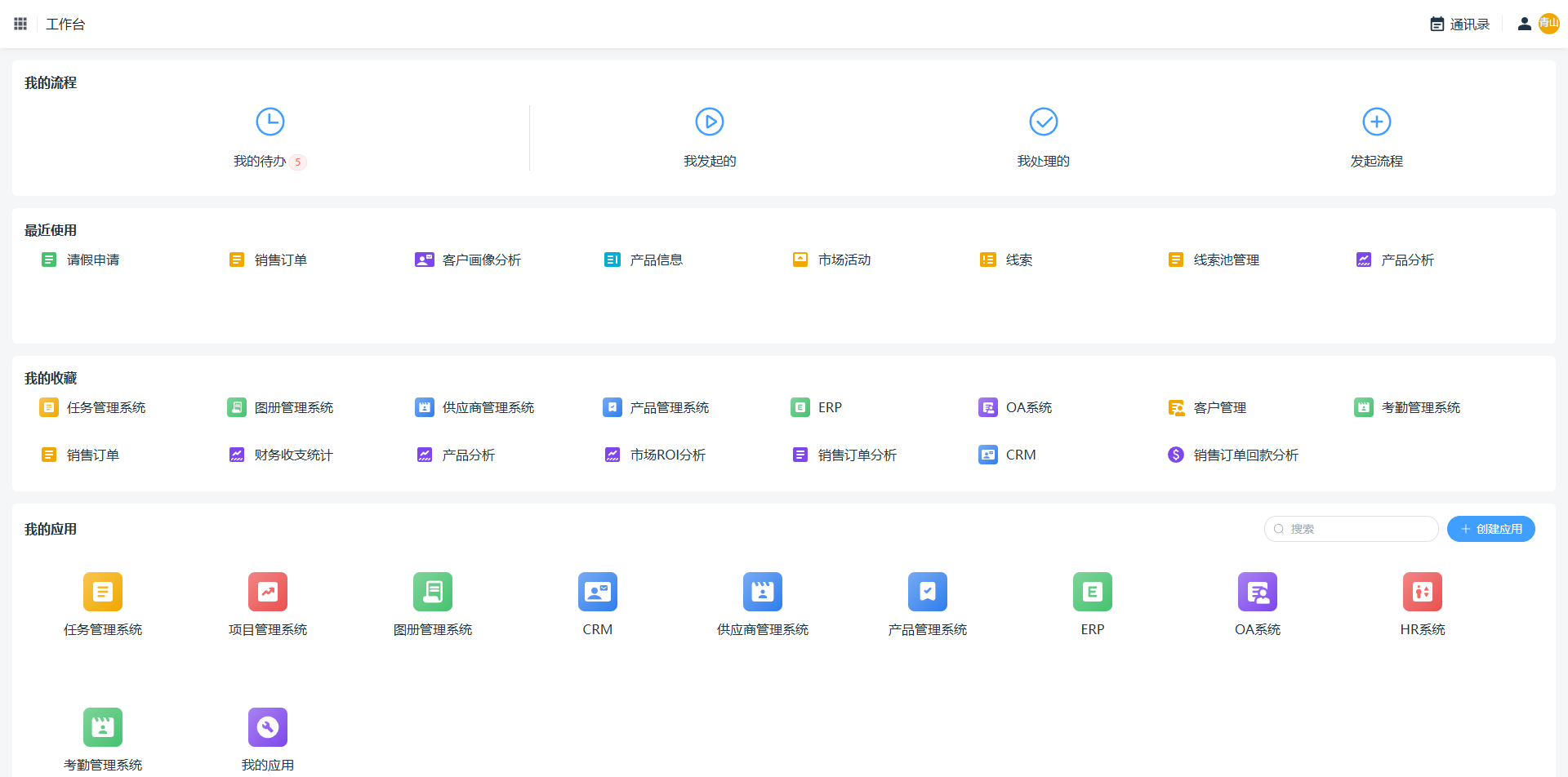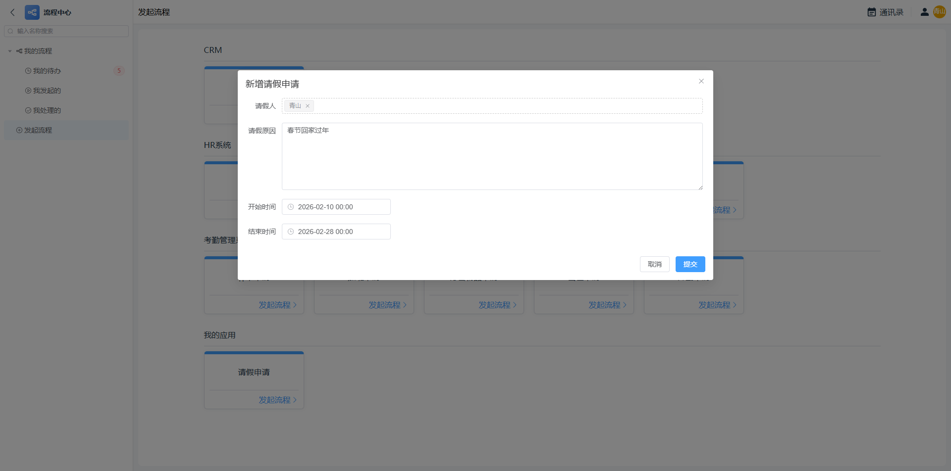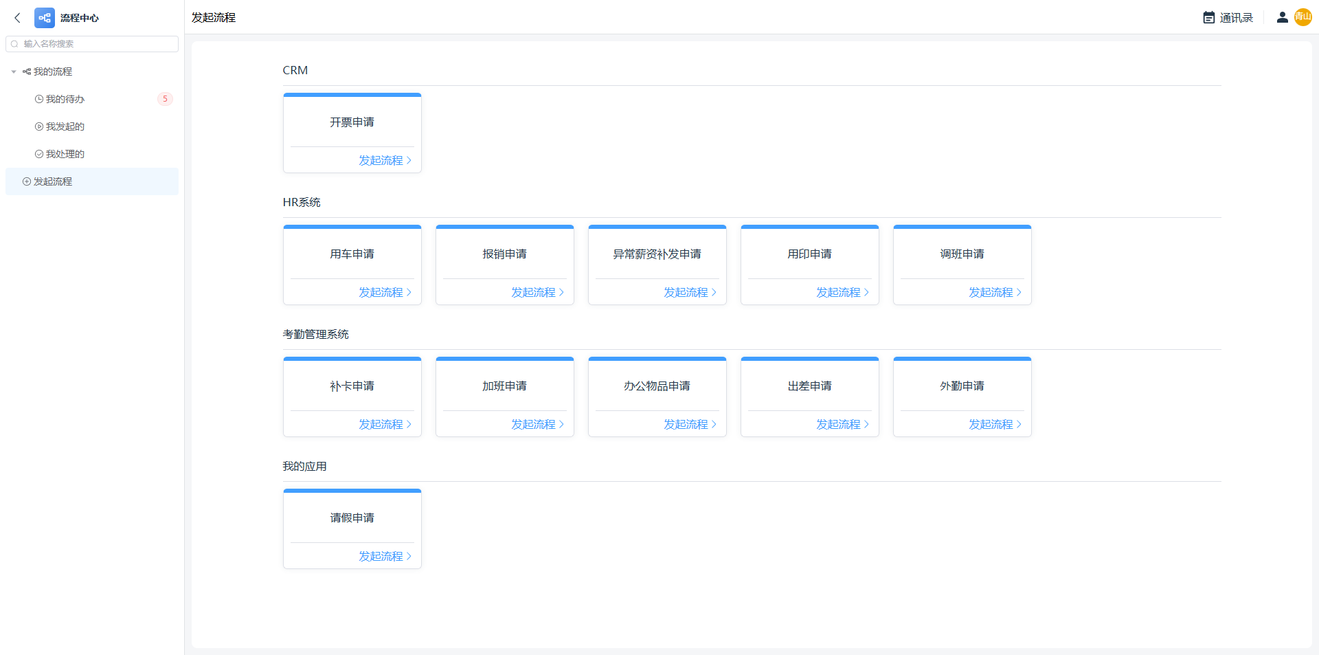 流程中心发起流程页 展示企业所有业务系统中的流程 统一入口