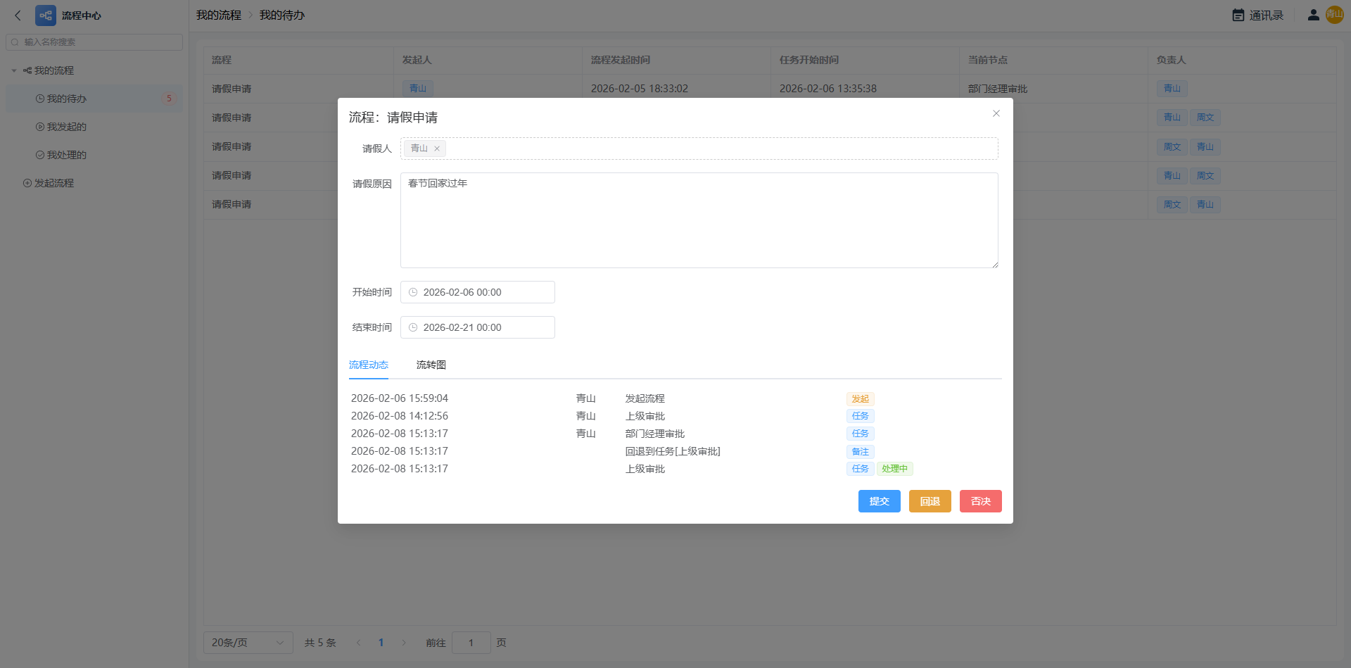 流程中心可集中管理与处理来自企业各业务系统的全量流程数据,实现统一监控与高效协同。