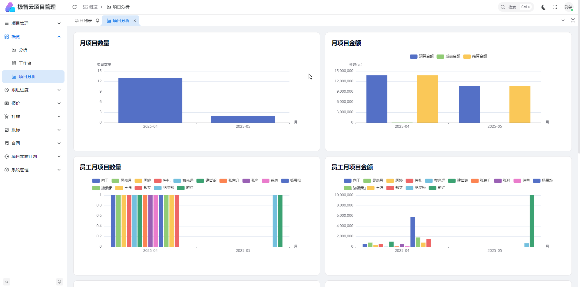 数智分析,以项目全链路数字化信息为基础,对项目各环节进行数据智能化分析,为企业决策提供科学依据,提升企业效率。